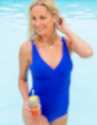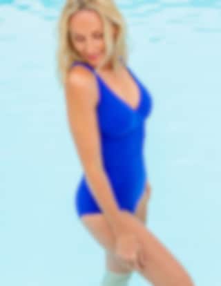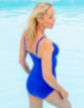 Fodrad framtill. Breda justerbara axelband. Rak rygg. Låg benskärning.