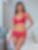 Feminint uttryck: Täckande spets i en starkt ceriserosa nyans som ger en elegant och sensuell look.