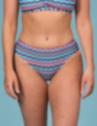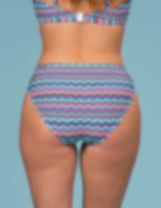 Mönstrad bikinitrosa i färgglatt sick-sack mönster. Trosan har medelhög midja och benskärning.