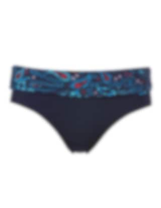 Marinblå bikinitrosa med vikbar ovandel i paisleymönster. Smickrande rynkning i sidorna.