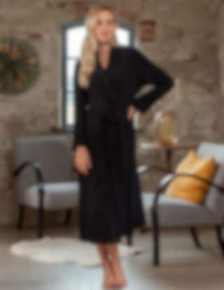 Väldigt mjuk och skön morgonrock med sjalkrage, sidfickor och knytskärp i midjan.