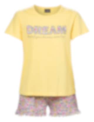 Blommiga shorts med resår i midjan och volangkant nertill.