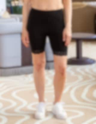 Cykelbyxor i mjuk och följsam viskostrikå som känns behaglig mot huden – perfekta att bära under klänningar, kjolar eller som de är till vardags. Den elastiska spetskanten nedtill ger en feminin touch samtidigt som den håller byxbenen på plats utan att strama. Resår i midjan för en smidig och bekväm passform hela dagen.