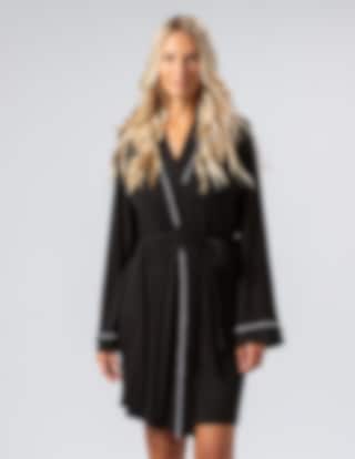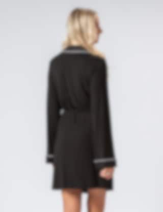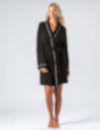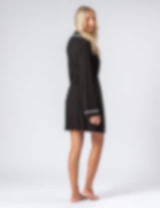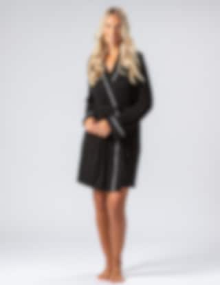 Elegant svart modell med vit piping som kontrasterande detalj.
