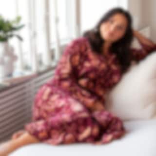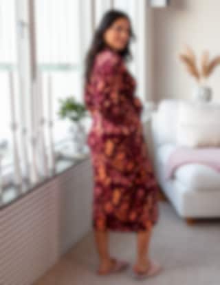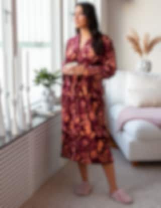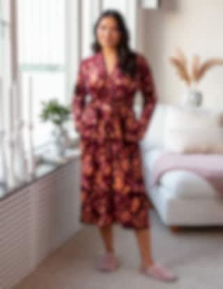Morgonrock i mjuk sammetsfleece med ett dekorativt blommönster i bordeauxtoner.