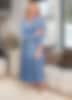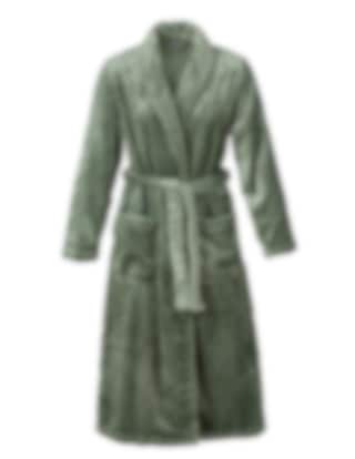 Sjalkrage, påsydda fickor fram och avtagbart knytskärp i midjan.