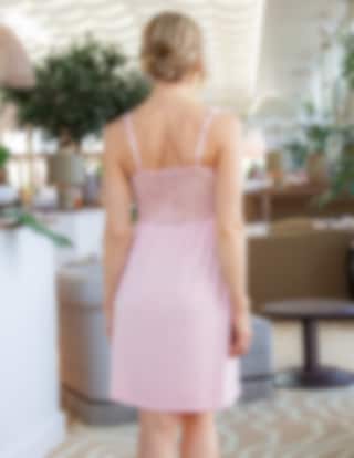 Spetsen över byst är fodrad, spets bak och under byst är ofodrad.