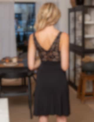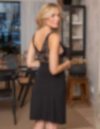 Spetsen över byst är fodrad, spets bak och under byst är ofodrad.