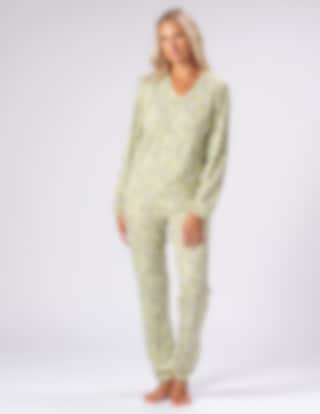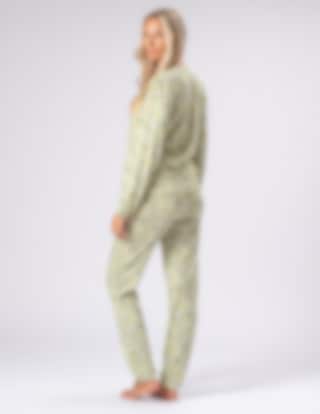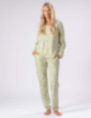 Byxa med resår i midja och benslut samt snedställda fickor framtill.