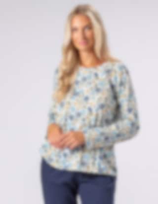 Mönstrad tröja med rundad halsringning och lång ärm.