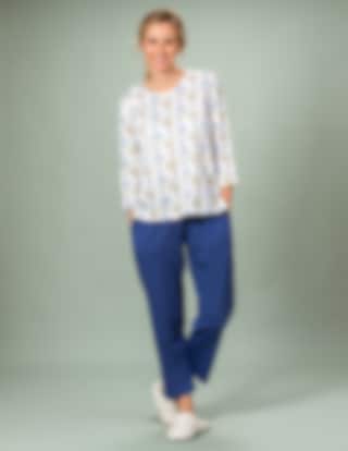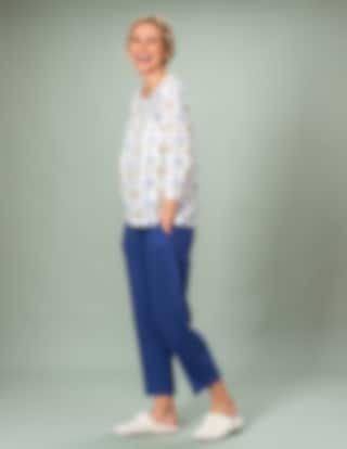 Byxan har 7/8 längd, resår i midjan och sidsömsfickor.