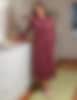 Klänningen har hög krage med dragsko, långa ärmar och praktiska sidfickor.