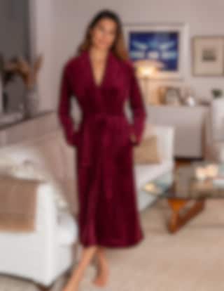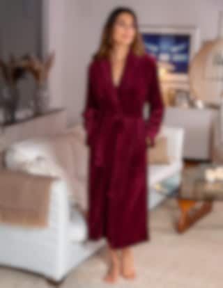 Den knälånga längden och den djupa bordeauxfärgen gör den till ett bekvämt och tidlöst plagg för hemmabruk.