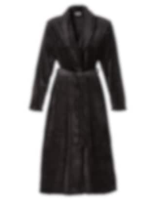 Morgonrock i mjuk sammetsfleece med klassisk sjalkrage.