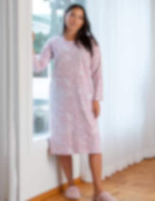 Mjukt och långärmat nattlinne i bomullstrikå med romantiskt blommönster.
